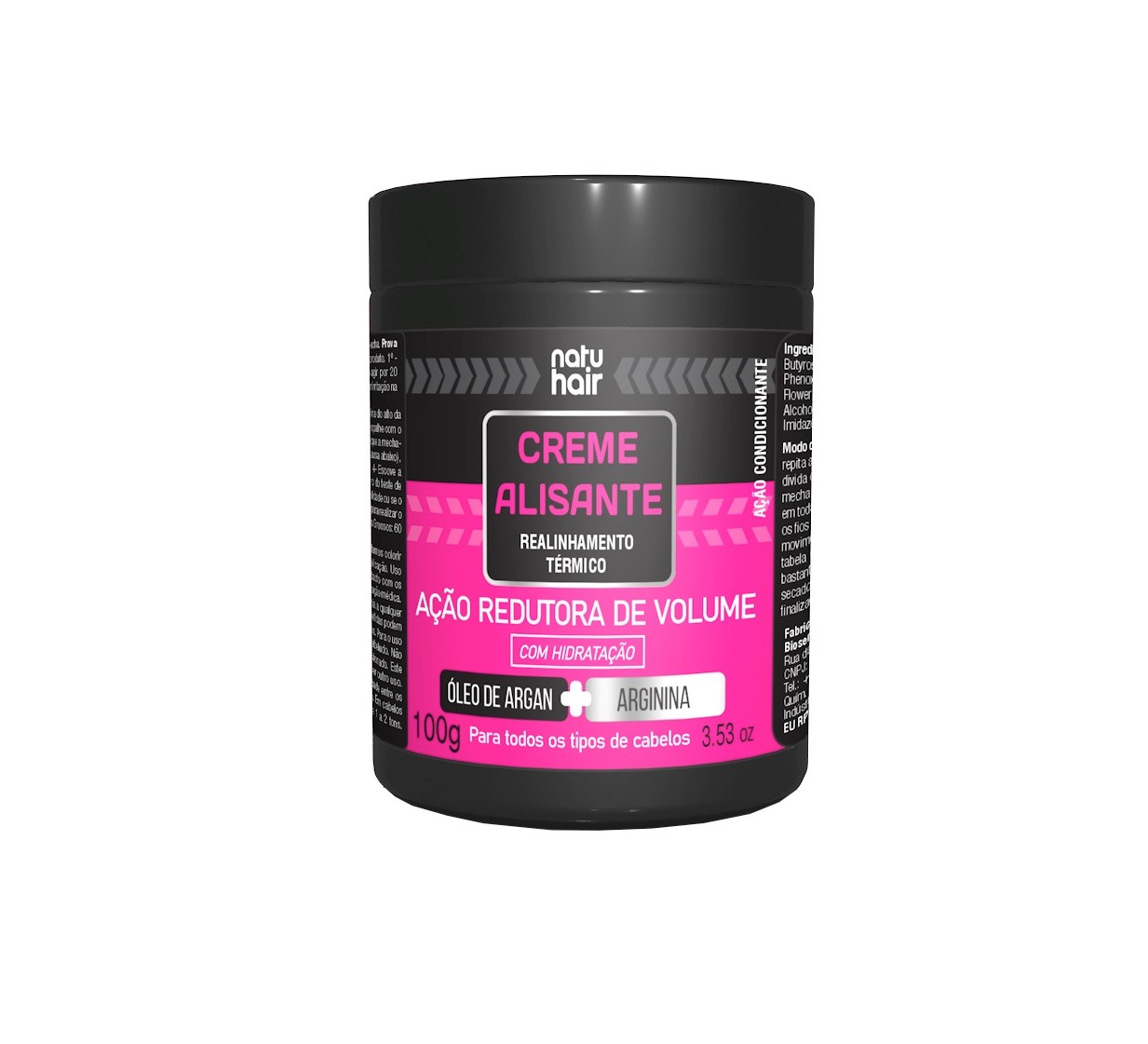 Creme Alisante NatuHair - Desenvolvido com Óleo de argan+ arginina. Ação redutora de volume com hidratação.